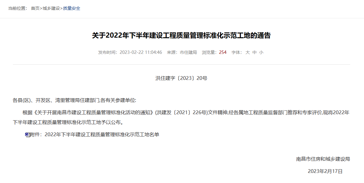 近日,在南昌市住房和城鄉建設局發布的《關于2022年下半年建設工程質量管理標準化示范工地的通告》、黃石市建筑業協會發布的《關于授予2022年度黃石市建設結構優質工程獎項目的通知》中,經各屬地工程質量監督部門推薦和專家評價,由華泰建設工程有限公司承建的“南水大廈”項目與“太陽城·檀悅府二標段1#、7#、8#樓”項目分別榮獲南昌市“2022年下半年建設工程質量管理標準化示范工地”、“黃石市2022年度建設工程銅都杯(結構優質工程)獎”。建設工程質量標準化示范工地評比是考核參建單位質量管理水平的重要標準之一,同時,建設工程銅都杯(結構優質工程獎)代表了建筑工程結構施工質量的高水平,也是精品工程的重要標志。獲此兩項殊榮,是對華泰建設項目施工水平及安全質量管理的充分肯定,彰顯了華泰建設在工程項目管理、工程品質等領域的卓越實力。
